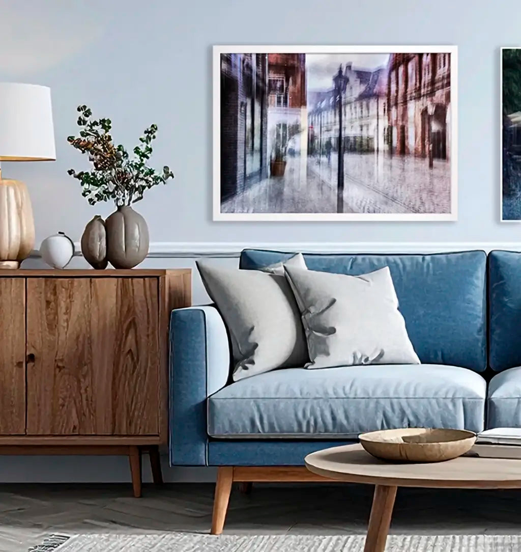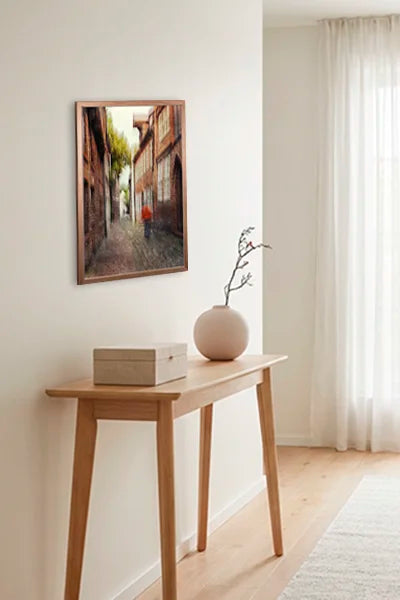Die Lüneburg Street Views sind eine eigene Serie – entstanden aus dem Impuls einer Neuankunft: alles neu sehen, nichts als selbstverständlich nehmen. Orte wie der Platz Am Sande, der Stintmarkt oder die schmalen Gassen der Altstadt werden mit ICM fotografiert – die Kamera bewegt sich während der Belichtung, Formen lösen sich auf, Licht und Farbe fließen. Mittelalterliche Backsteinarchitektur wird zum abstrakten Stadtbild. Diese Motive sind keine Stadtansichten – sie sind Eindrücke. Stark als einzelnes Statement-Bild, besonders wirkungsvoll in Räumen die etwas Urbanes vertragen ohne dokumentarisch zu wirken.